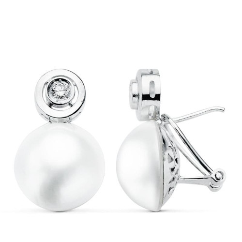 18K PENDIENTES CIRCONITA ORO BICOLOR 4 MM PERLA 6 MM CIERRE CATALAN