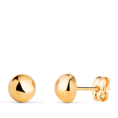18K PENDIENTES ORO AMARILLO BOLA LISA BRILLA HUECA. ANCHO: 5 MM. CIERRE PRESION