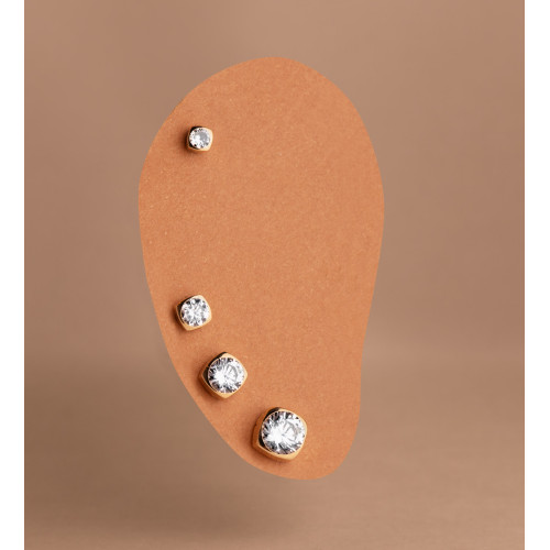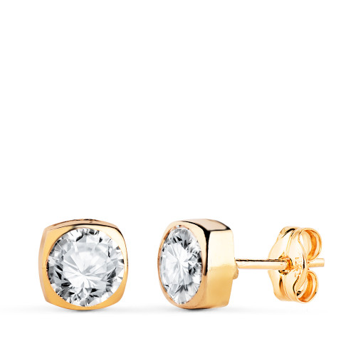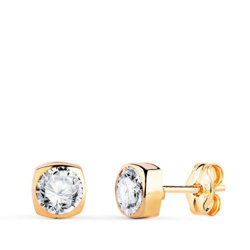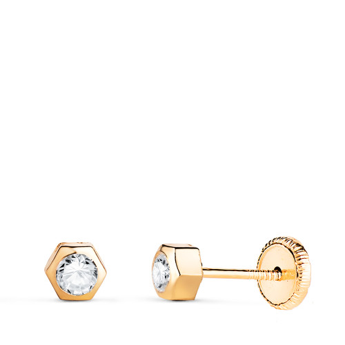 18K PENDIENTES ORO AMARILLO CHATON HEXAGONO CON CIRCONITA. MEDIDA: 5 X 4,5 MM. CIERRE TUERCA