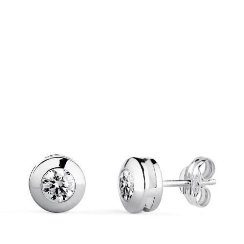 18K PENDIENTES ORO BLANCO CHATON GALERIA CON CIRCONITA. MEDIDA: 8,5 MM. CIERRE PRESION