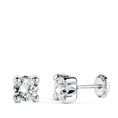 18K PENDIENTES ORO AMARILLO CORAZON CON CIRCONITA 5 X 5 MM CIERRE TUERCA
