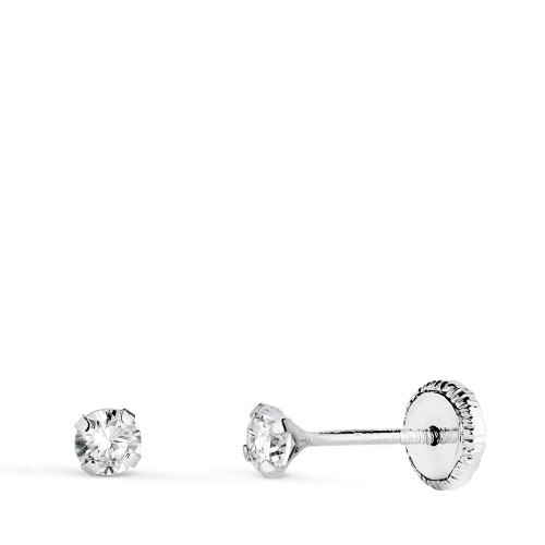 18K PENDIENTES ORO BLANCO 4 GARRAS CON CIRCONITA. ANCHO: 3 MM CIERRE TUERCA