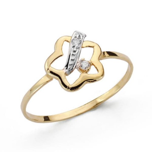 18K SORTIJA ORO BICOLOR CON FLOR Y CIRCONITAS. ANCHO: 9,5 MM