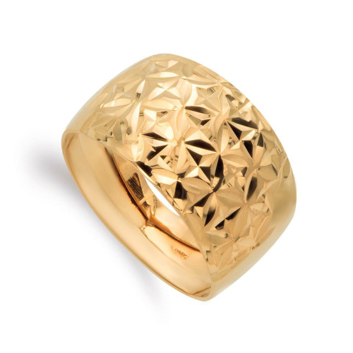 18K SORTIJA ORO BICOLOR CON MOTIVO CALADO GRECA Y CIRCONITAS. ANCHO: 4,5 MM