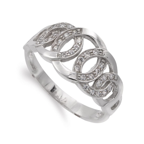 18K SORTIJA ORO BLANCO CON CIRCULOS BRILLO Y CIRCONITAS. ANCHO 10 MM