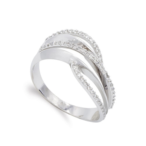 18K SORTIJA ORO BLANCO CON CIRCULOS BRILLO Y CIRCONITAS. ANCHO 10 MM