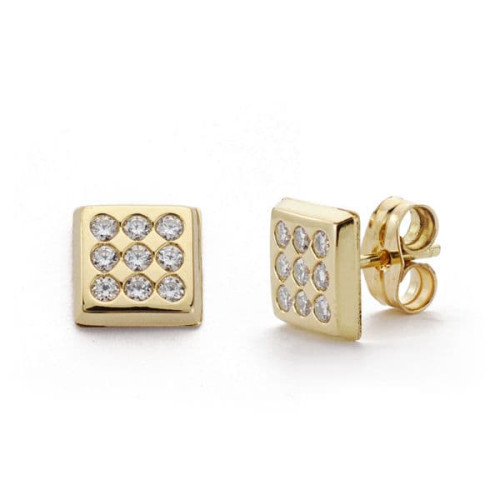 18K PENDIENTES ORO BICOLOR TREBOL. 6 MM CIERRE TUERCA