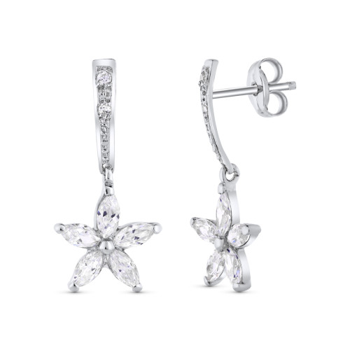 9K PENDIENTES ORO BLANCO PERLA 30X7 MM CIERRE PRESION