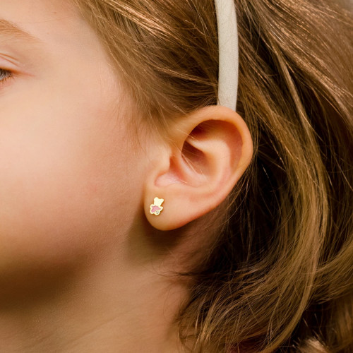 18K PENDIENTES ORO AMARILLO MARIPOSA Y FLOR 8X7 MM CIERRE PRESION