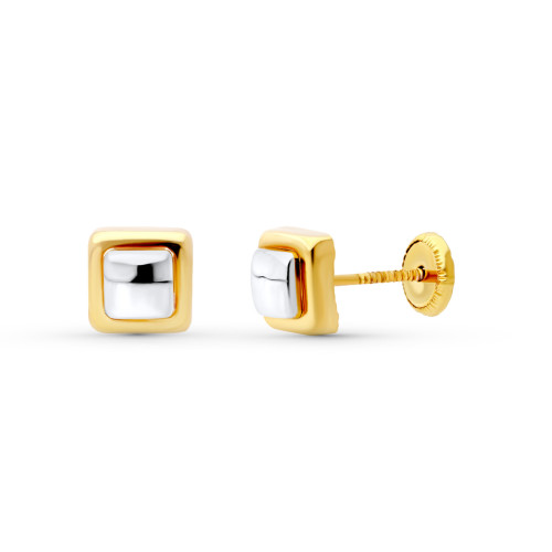 18K PENDIENTES ORO BICOLOR TREBOL. 8X8 MM CIERRE TUERCA