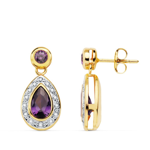 18K PENDIENTES ORO BICOLOR TRIANGULO CON CIRCONITA 8X8 MM CIERRE TUERCA