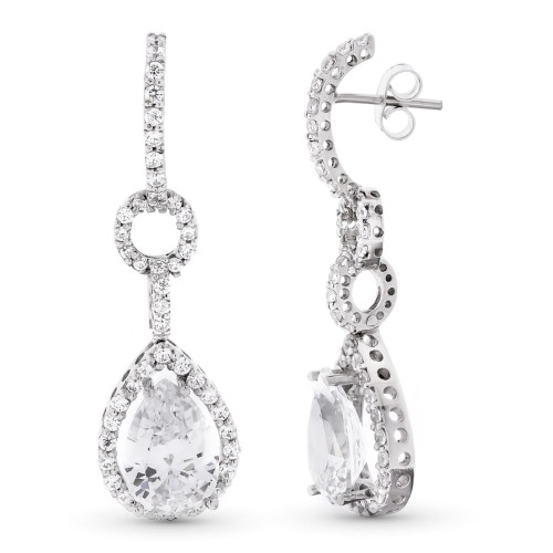 18K Pendientes Oro Blanco Novia O Madrina Circonita 16X14 Mm Cierre Omega