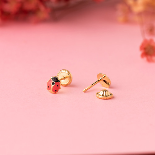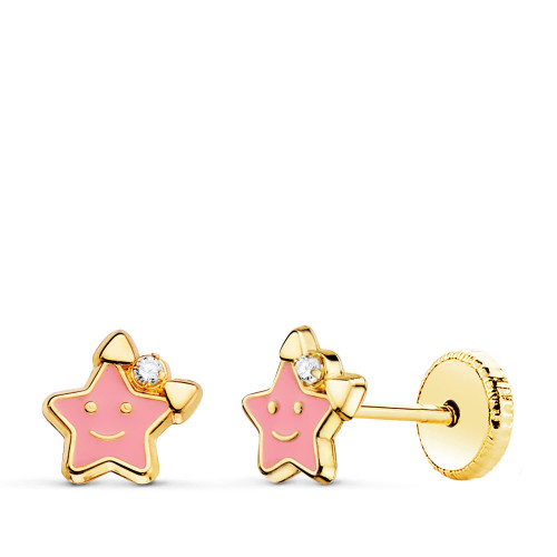 18K PENDIENTES ORO AMARILLO LIBELULA ESMALTE PASTEL 7 X 5 MM. CIERRE TUERCA