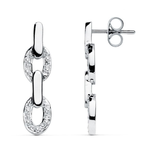 18K PENDIENTES ORO BLANCO TRES C...