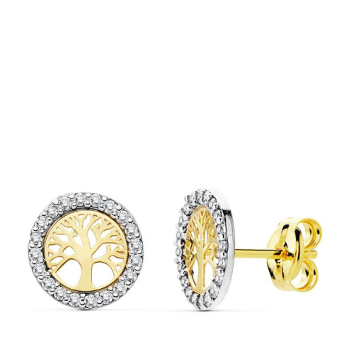 18K PENDIENTES OVAL NACAR ORO BICOLOR 10X8 MM CIERRE PRESION