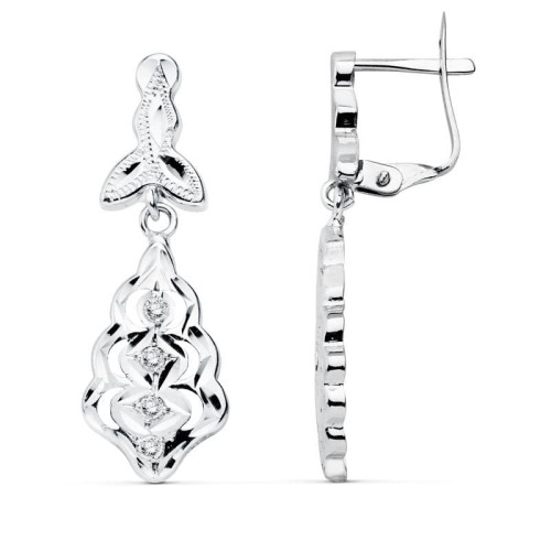18K PENDIENTES ORO BLANCO DOS CUERPOS CON CIRCONITA 25X6 MM. CIERRE TUERCA