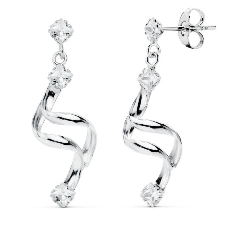 9K PENDIENTES ORO BLANCO PERLA 28X9 MM CIERRE CATALAN