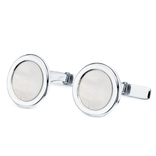 18K GEMELOS ORO BLANCO REDONDOS CON NACAR 15 MM CIERRE RIGIDO OSCILANTE