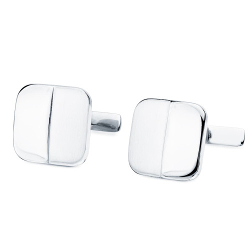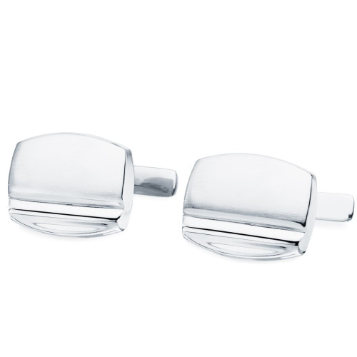 18K GEMELOS ORO BLANCO TONEL MATE Y BRILLO 17X13 MM CIERRE RIGIDO OCSILANTE
