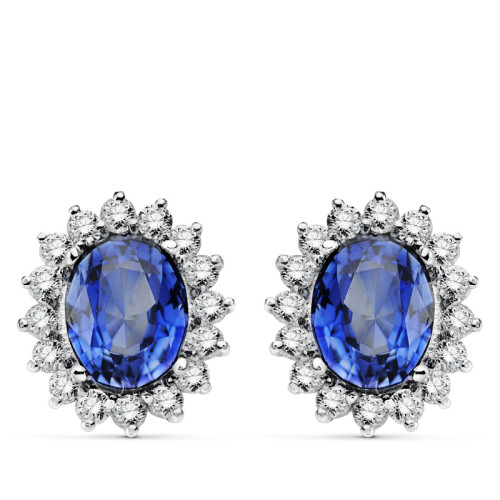 18K PENDIENTES O.BLANCO ZAFIRO DIFUSION 9X7 MM 4,94 QTS. 32 DIAMANTES LABORATORIO VS2-G 1,12 QTS. CIERRE OMEGA 14X12,5 MM