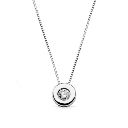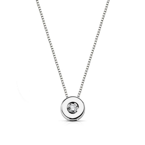 18K GARGANTILLA ORO BLANCO CHATON 5,5 MM DIAMANTE LABORATORIO 1,70MM 0,020 QTS. G-VS2. CADENA 42CM