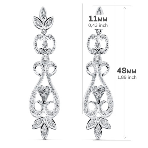 18K PENDIENTES ORO BLANCO FLOR CIRCONITA PERLA 14 MM CIERRE PRESION