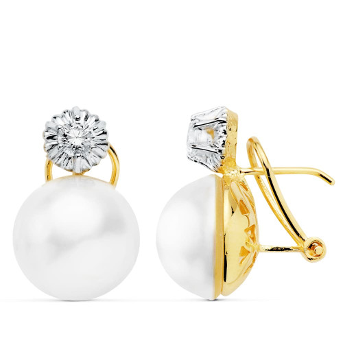 18K PENDIENTES ORO AMARILLO CON CIRCONITA CIERRE OMEGA