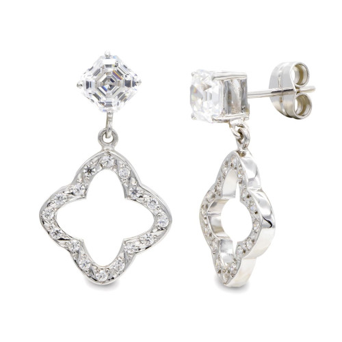 18K PENDIENTES ORO BICOLOR CUAJO CIRCONITA Y RAMAS 13X13 MM CIERRE OMEGA