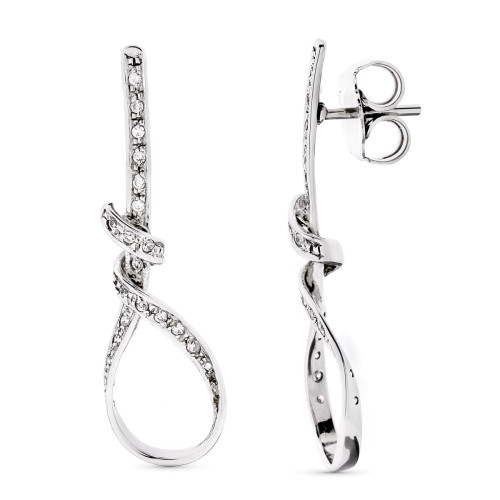 18K PENDIENTES ORO BLANCO LARGOS NUDO CIRCONITA 41X12 MM PRESIÓN