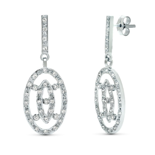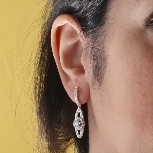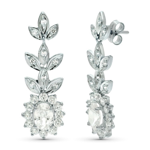 18K PENDIENTES ORO BLANCO JUEGO NOVIA CUAJO DE CIRCONITA 30X9 MM PRESION