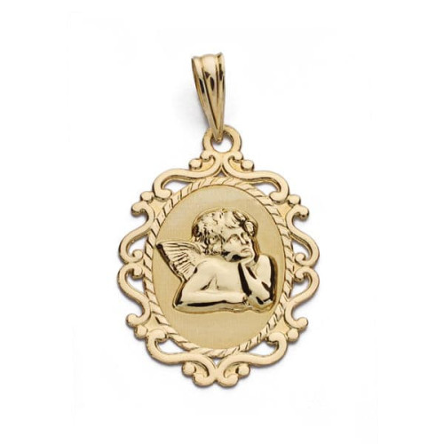 9K MEDALLA ORO AMARILLO ANGEL BURLON. 17X10 MM