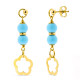 18K PENDIENTES ORO AMARILLO 2 BOLAS TURQUESA 6 MM FLOR CIERRE PRESIÓN