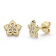 18K PENDIENTES ORO AMARILLO FLOR CIRCONITA 7X7 MM CIERRE PRESION