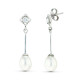 18K PENDIENTES ORO BLANCO DOS CUERPOS CON PERLAS Y CIRCONITA. CIERRE PRESION