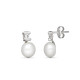 18K PENDIENTES ORO BLANCO PERLA CIRCONITA 10X6 MM CIERRE PRESION
