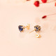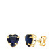 18K PENDIENTES ORO AMARILLO CORAZON PIEDRA COLOR AZUL 6 X 6 MM. CIERRE PRESION
