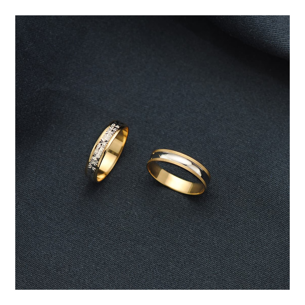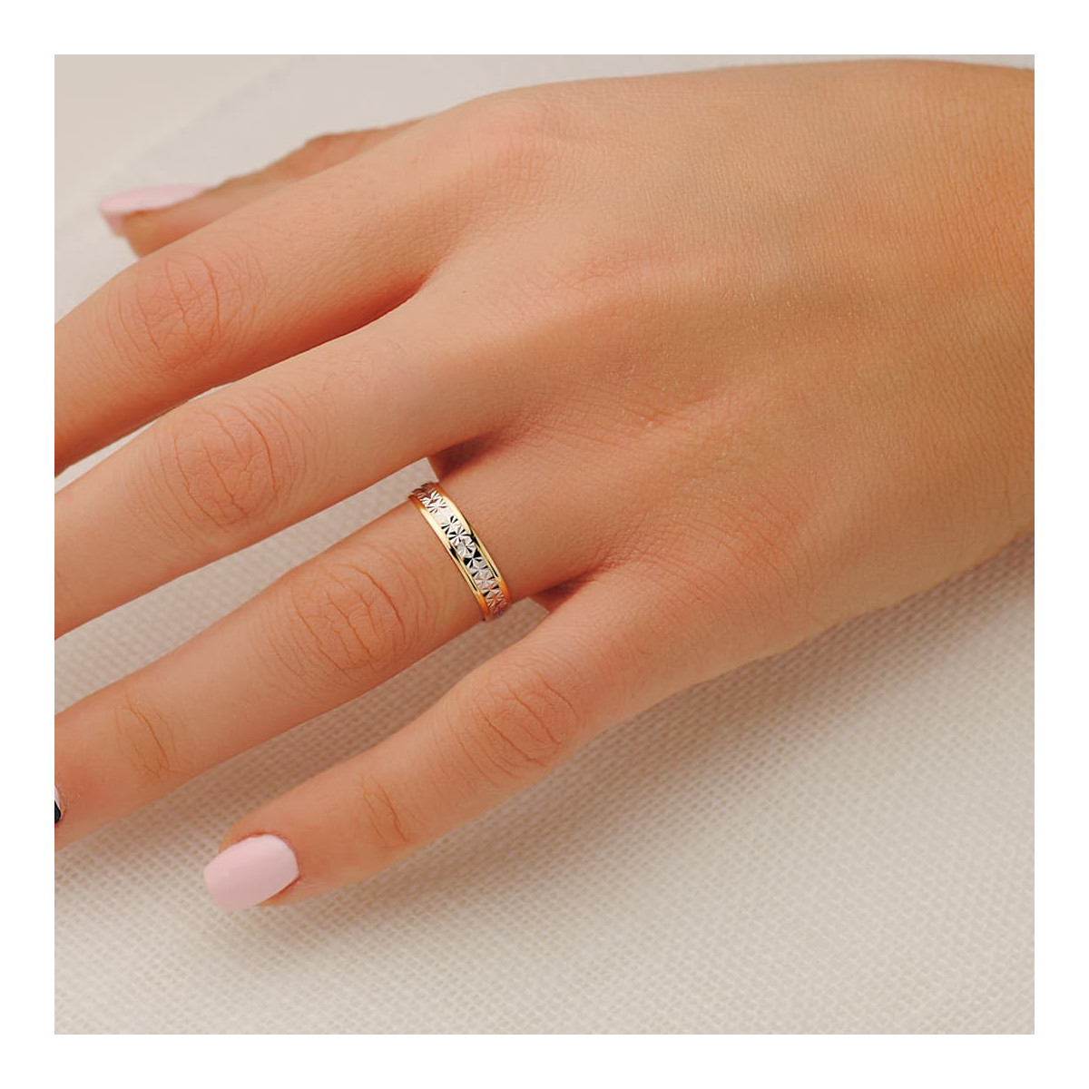 18K ALIANZA ORO BICOLOR TALLADA Y BORDES EN BRILLO 4 MM