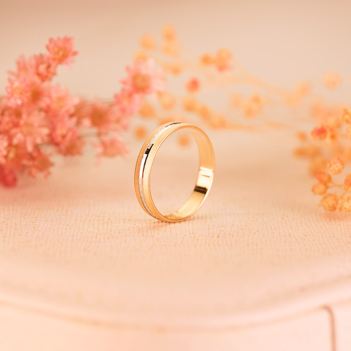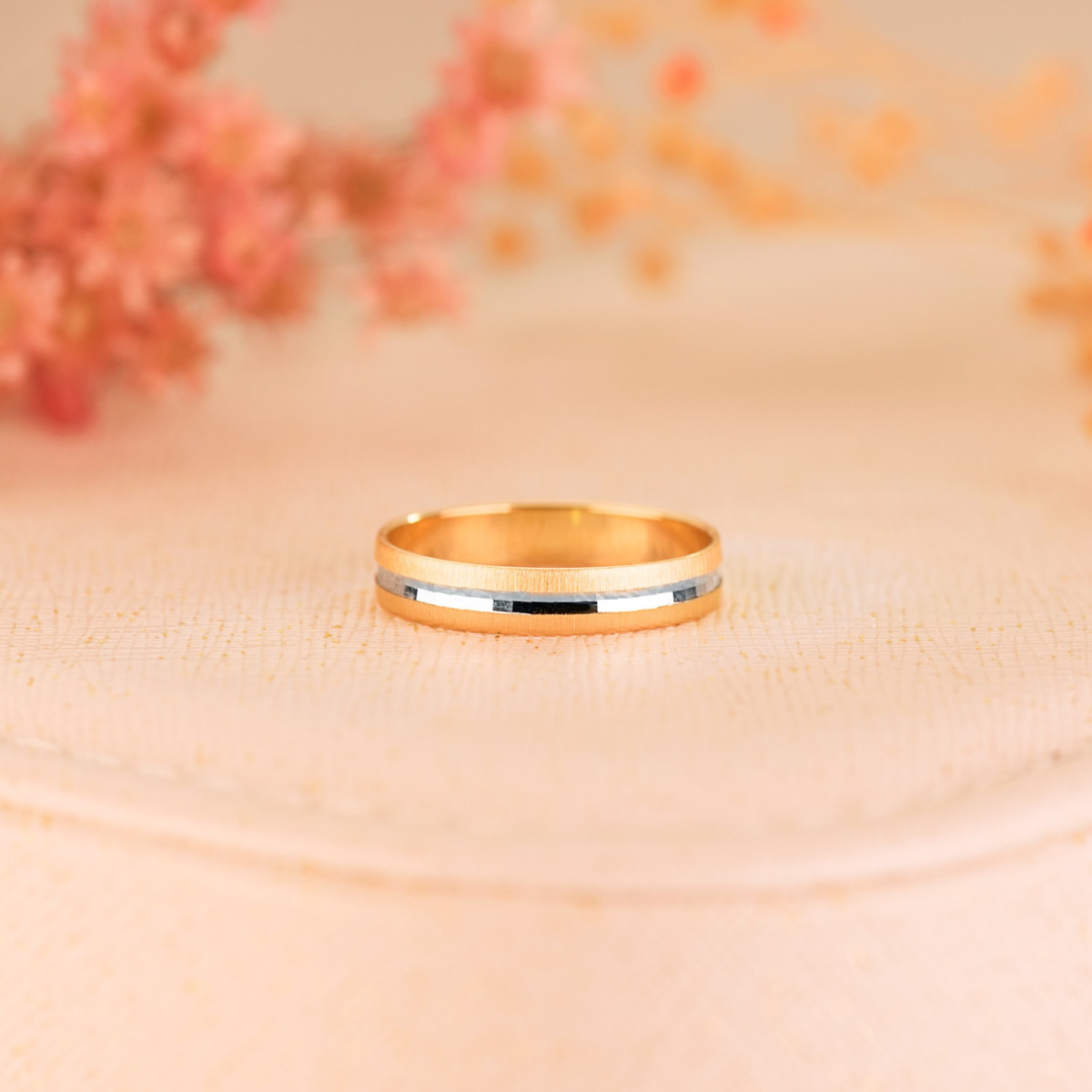 18K ALIANZA ORO BICOLOR TALLADA Y BORDES MATIZADOS. 3,5 MM