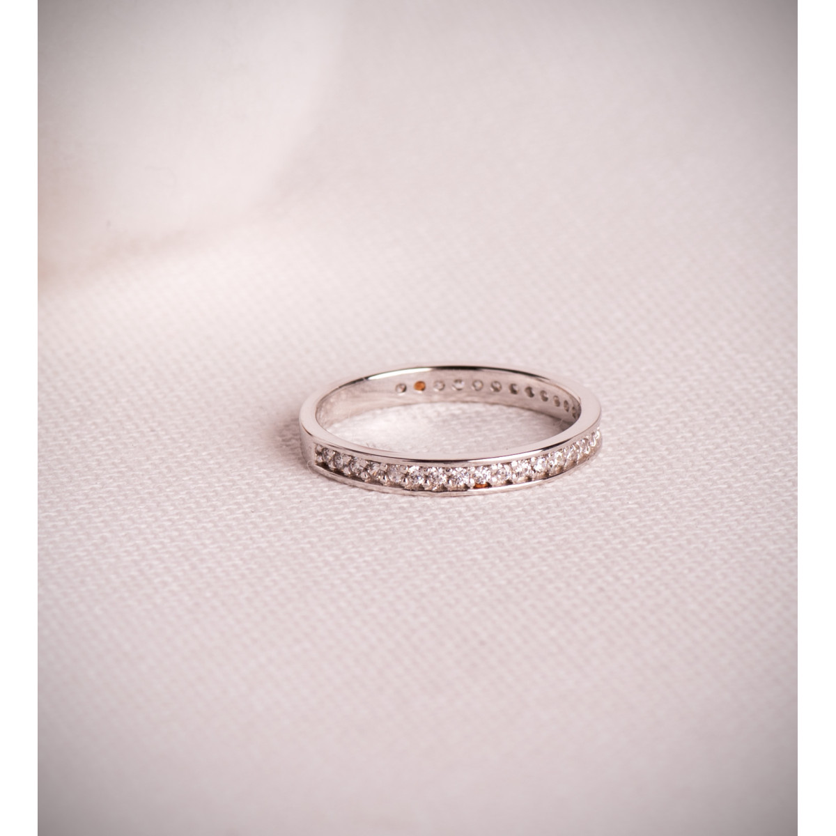 18K MEDIA ALIANZA O ANILLO ORO BLANCO CON CIRCONITA CLAVADA ANCHO: 2,5MM