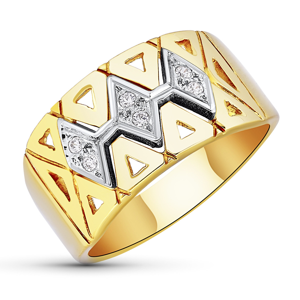 18K SORTIJA ORO BICOLOR CALADA CON ROMBOS. ANCHO: 10,5 MM