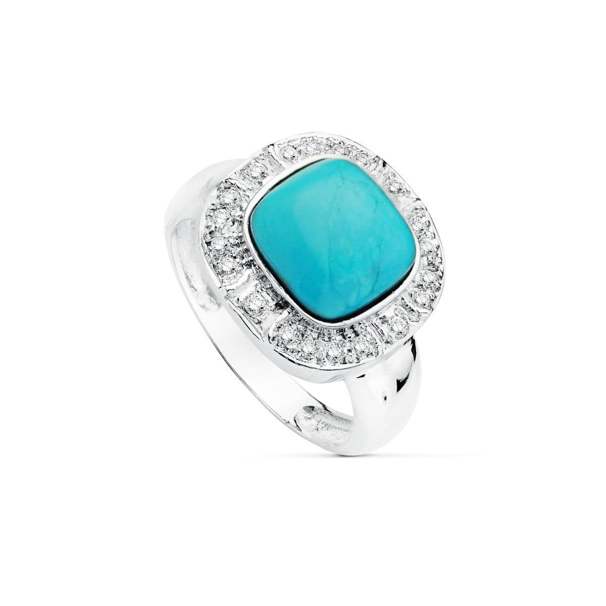 18K SORTIJA ORO BLANCO CON TURQUESA DE10 MM Y CIRCONITAS. ANCHO: 14 MM