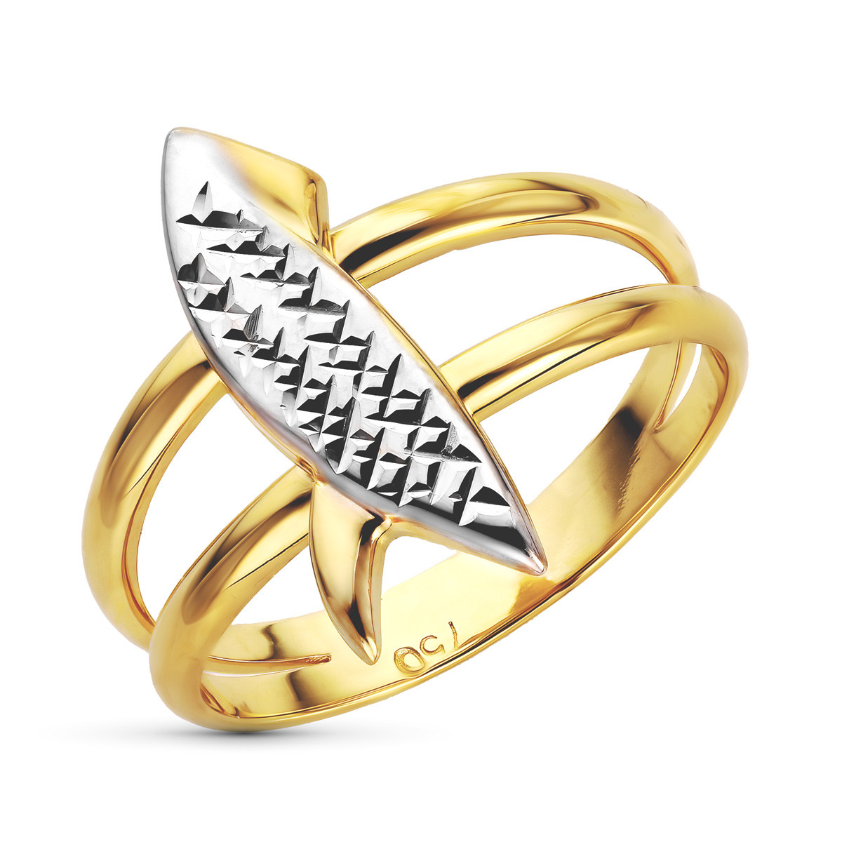 18K SORTIJA ORO BICOLOR DOBLE CUERPO HOJA TALLADA. ANCHO: 18,5 MM