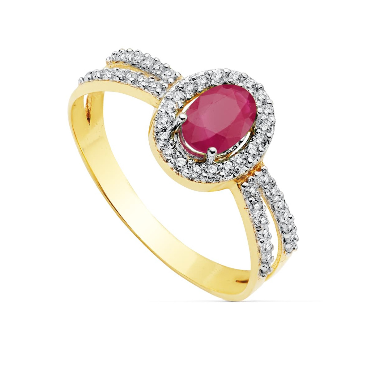 18K SORTIJA ORO BICOLOR CON CIRCONITA Y RUBI OVAL 6X4 MM