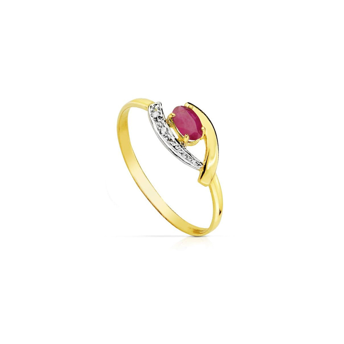 18K SORTIJA ORO BICOLOR CON CIRCONITA Y RUBI 5X3 MM