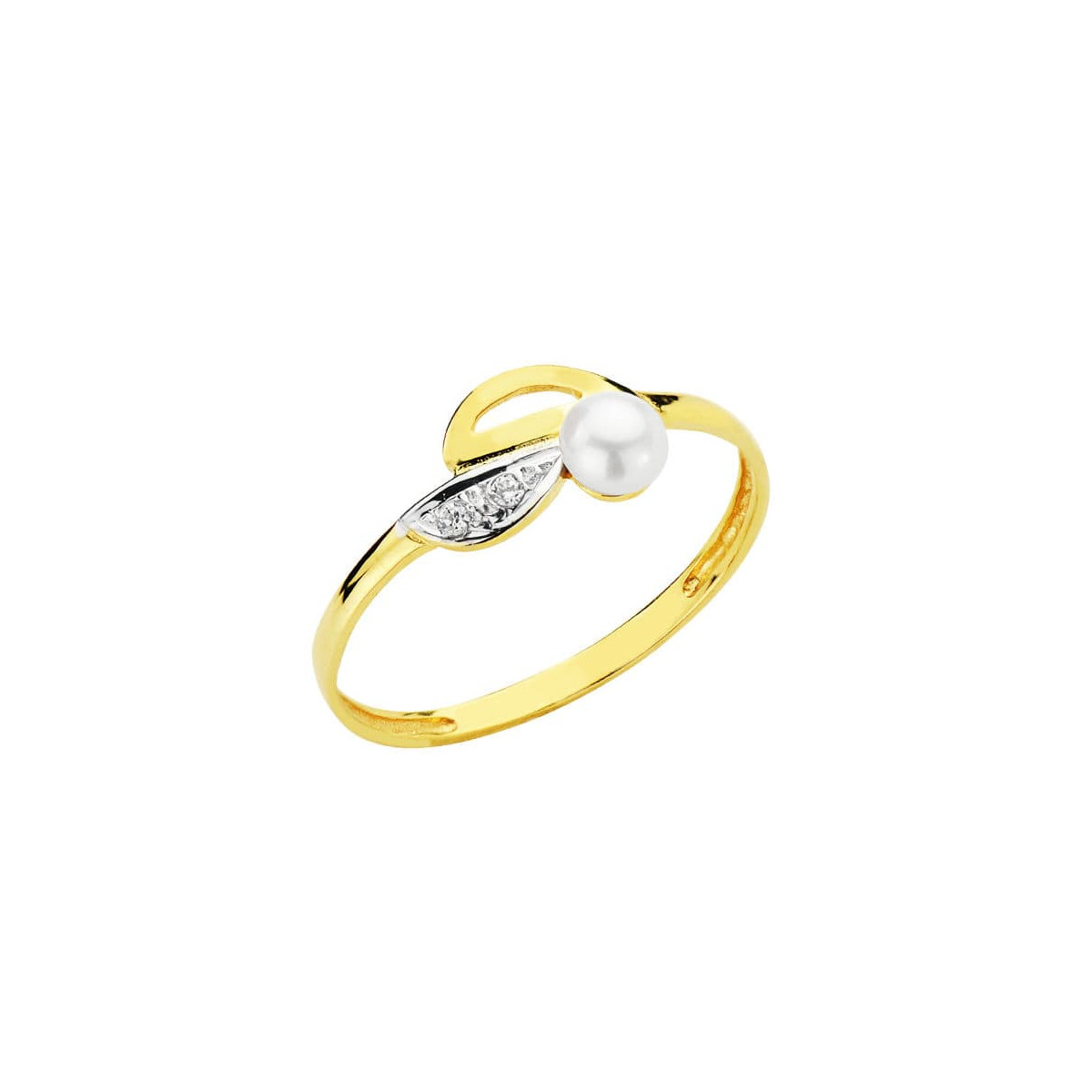 18K SORTIJA ORO BICOLOR MOTIVO CALADO CON PERLA DE 3,5 MM Y CIRCONITAS. ANCHO: 7 MM