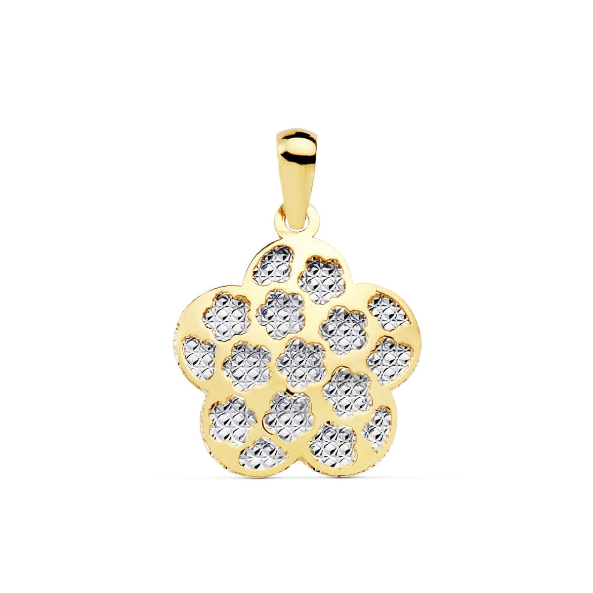 18K COLGANTE AMULETO FLOR BICOLOR 17X17 MM