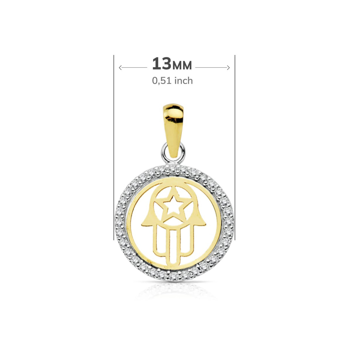 18K COLGANTE AMULETO ORO BICOLOR MANO DE FATIMA 13 MM