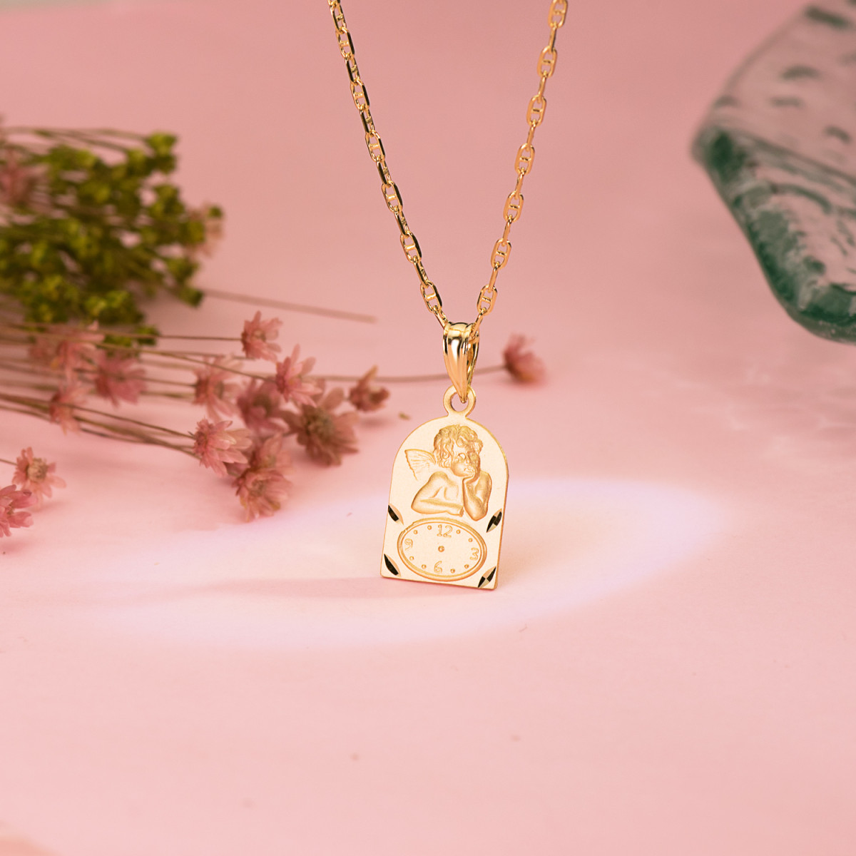 18K MEDALLA ORO AMARILLO ARCO ANGELITO BUROL CON RELOJ TALLADA 18X11 MM