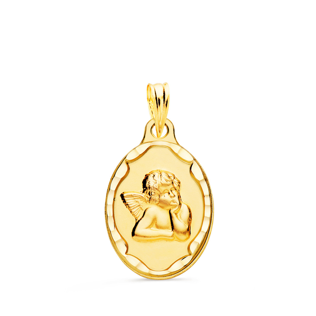 9K MEDALLA ORO AMARILLO ANGELITO BURLON OVAL CERCO TALLADO 18X14 MM