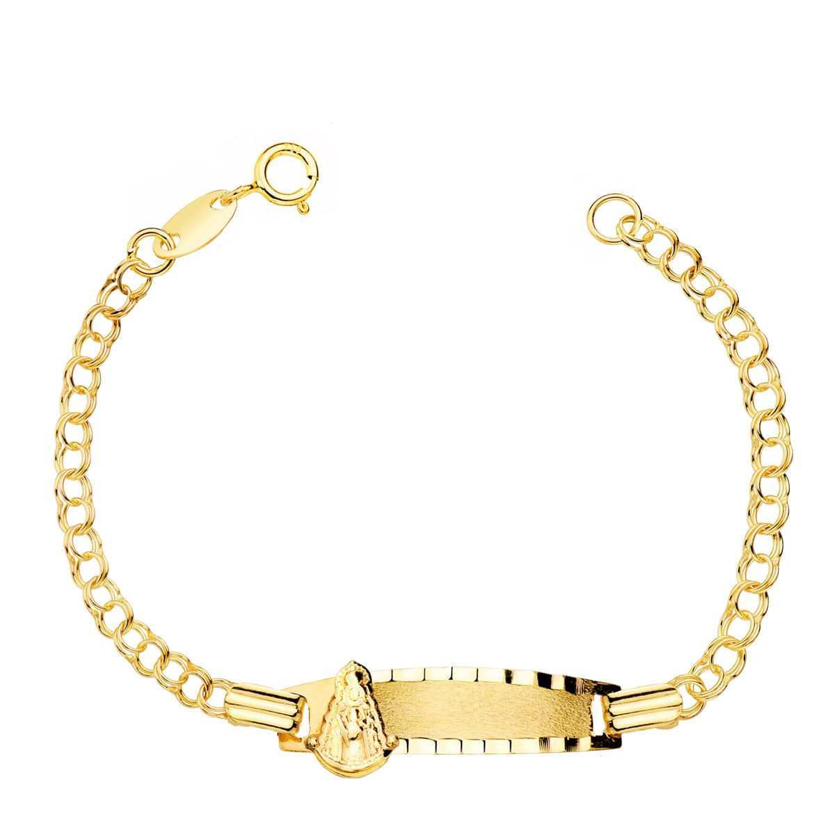 18K ESCLAVA BEBE ORO AMARILLO HUNGARINA PLACA CHAPA VIRGEN ROCIO 22X5 MM 12CM